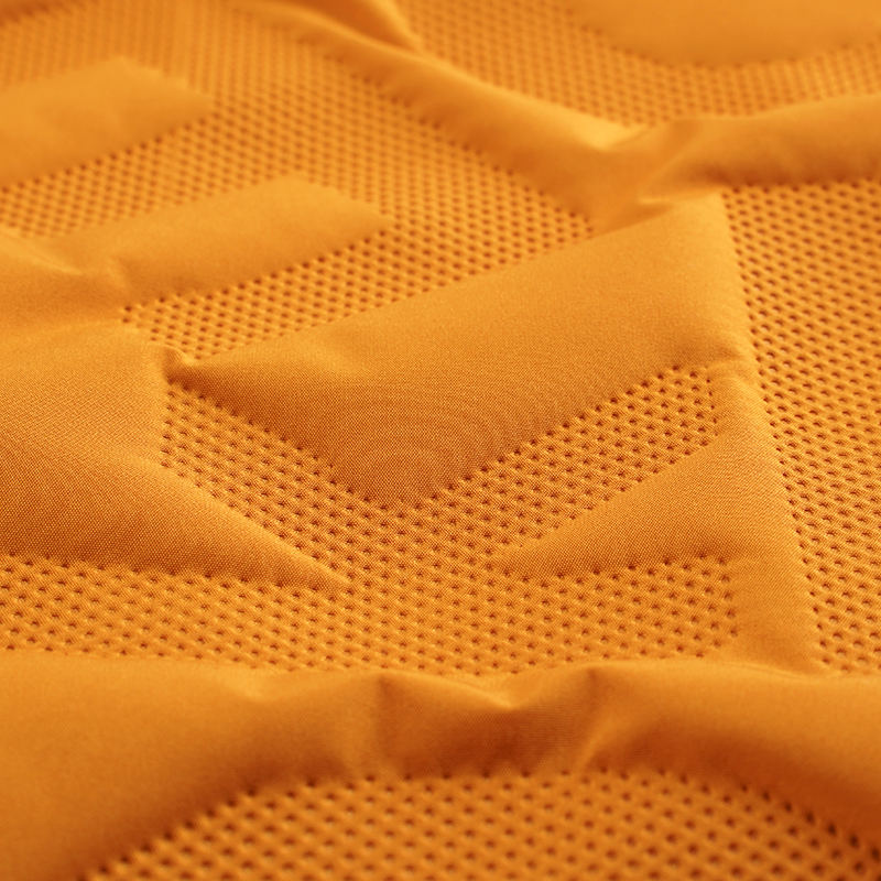 এই ফ্যাব্রিকটি স্প্রিং পলিয়েস্টার, অনুকরণ সিল্ক সুতি এবং পলিয়েস্টার-ভিসকোজ আস্তরণের সংমিশ্রণে অতিস্বনক কুইল্টিং যৌগিক প্রযুক্তি ব্যবহার করে। এই প্রক্রিয়াটি আল্ট্রাসাউন্ডের উচ্চ-ফ্রিকোয়েন্সি কম্পন ব্যবহার করে ফ্যাব্রিকের স্তরগুলির মধ্যে তন্তুগুলি তাত্ক্ষণিকভাবে ঘষতে এবং ফিউজ করতে পারে, traditional তিহ্যবাহী সূঁচের কাজের প্রয়োজন ছাড়াই দৃ firm ় যৌথ পয়েন্ট তৈরি করে। এই প্রক্রিয়াটি কেবল ফ্যাব্রিকের উত্পাদন দক্ষতার উন্নতি করে না, ফ্যাব্রিকের পৃষ্ঠকে মসৃণ এবং মসৃণ করে তোলে, পিনহোল ফুটো এবং অন্যান্য সমস্যা ছাড়াই এবং ফ্যাব্রিকের জলরোধীতা এবং অখণ্ডতা বাড়ায়। একই সময়ে, অতিস্বনক কুইলটিং যৌগিক প্রক্রিয়াটি ফাইবারের ক্ষতি হ্রাস করে, উপাদানের প্রতিটি স্তরের মূল কর্মক্ষমতা বজায় রাখে এবং ফ্যাব্রিকের গুণমান এবং পরিষেবা জীবন নিশ্চিত করে।