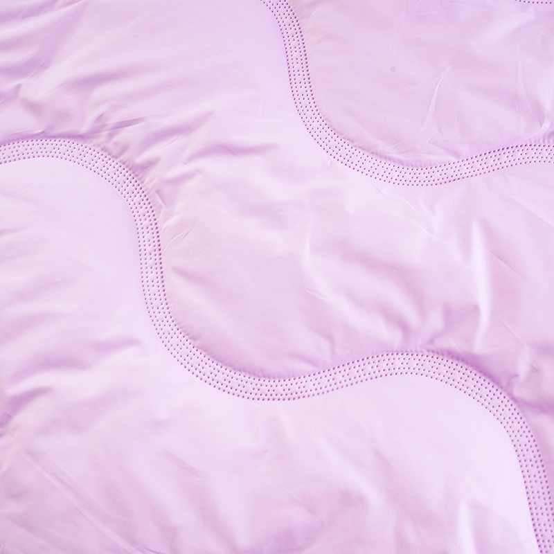 অনুকরণ সিল্ক কটন ফিলিং: 160 গ্রাম অনুকরণ সিল্ক তুলা সমানভাবে ফিল্ম ক্যালেন্ডারিং স্তরটিতে ছড়িয়ে পড়ে এবং অভিন্ন ভরাট নিশ্চিত করতে, স্থানচ্যুতি এড়াতে এবং স্থিতিশীল উষ্ণতা ধরে রাখার কর্মক্ষমতা বজায় রাখার জন্য উন্নত কুইল্টিং প্রযুক্তির সাথে স্থির থাকে।
